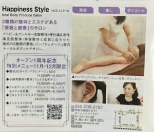 山梨県甲府市朝日でエステティックサロンを営業している「Happiness Style Total body produce salon」(ハピネススタイル)です。